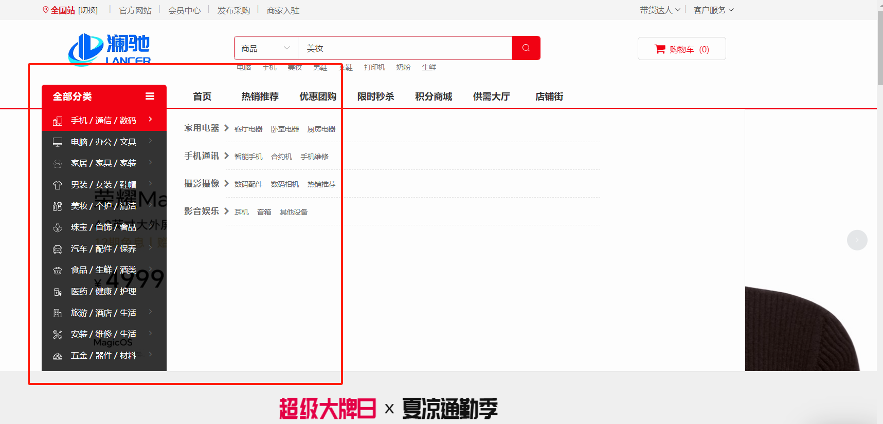 目录 搜索 展开 系统角色说明一、平台管理后台概况设置站点设置上传设置终端设置运营设置运营设置启动页搜索设置积分设置敏感词计划任务反馈分类反馈类型转单设置消费者保障服务财务设置提现设置支付渠道推广设置物流设置快递公司物流查询接口设置互联登录地区设置通知设置消息设置邮件设置短信设置APP推送社交设置IM设置直播设置城市分站微信设置微信设置回复设置菜单设置模板消息SEO设置装修PC装修首页装修页面导航分类导航手机装修首页装修首页导航商品商品管理分类管理品牌管理类型管理规格管理店铺店铺管理供应商管理店铺等级店铺分类入驻协议店铺评价会员会员管理积分管理会员等级注册协议表单数据升级日志用户渠道渠道数据财务会员资金线下支付收款确认订单明细提现管理充值卡管理交易流水-收支明细定额充值提现银行卡订单商品订单退款退货订单评价-店铺评价管理营销活动中心资讯中心分销中心社交种草App发布用户反馈首页弹窗供求中心采购大厅供应大厅基础设置系统用户角色管理安全设置操作日志二、商家管理后台首页订单商品营销资金报表店铺基础售后批发市场三、门店管理后台四、会员(买家)中心PC端个人中心移动端个人中心五、商户入驻流程商城前期准备资料域名备案指南支付宝收款账户开通及配置微信⽀付配置 暂无相关搜索结果! 阅读次数:35 本文档使用 MinDoc 发布 分类管理 分类管理平台三级分类的维护,可以添加一级或两级或三级PC分类页效果展示:移动端分类展示:分类添加前,请先依次设置规格管理—>品牌管理—>类型类型, 这些数据都是关联到分类里面的,发布商品时要用到。分类首页只展示三级分类。注意:如果添加分类的时候通用类型那里没有显示你添加的类型,需要刷新一下浏览器,记住是浏览器的刷新。添加的佣金比例,最后一级分类生效。作者:admin 创建时间:2024-08-20 13:05最后编辑:admin 更新时间:2025-12-10 15:34