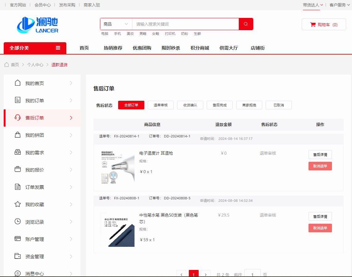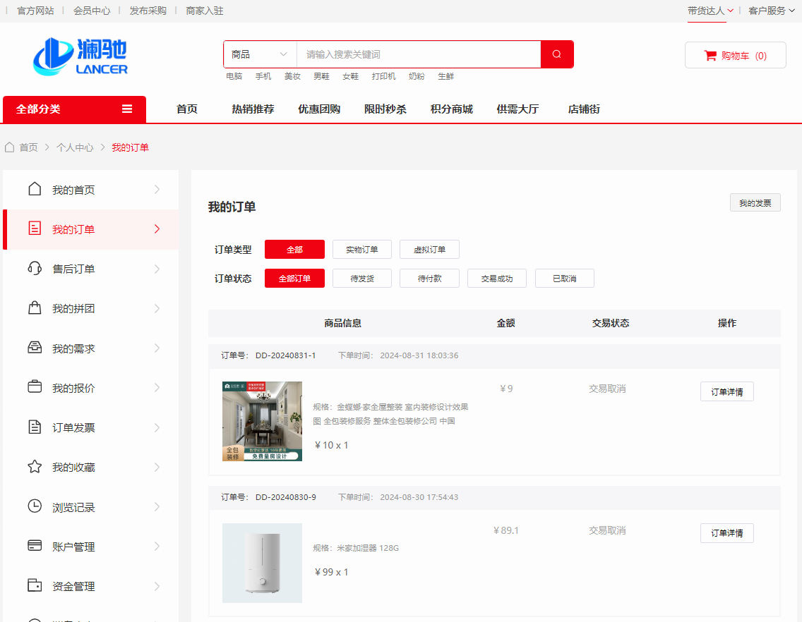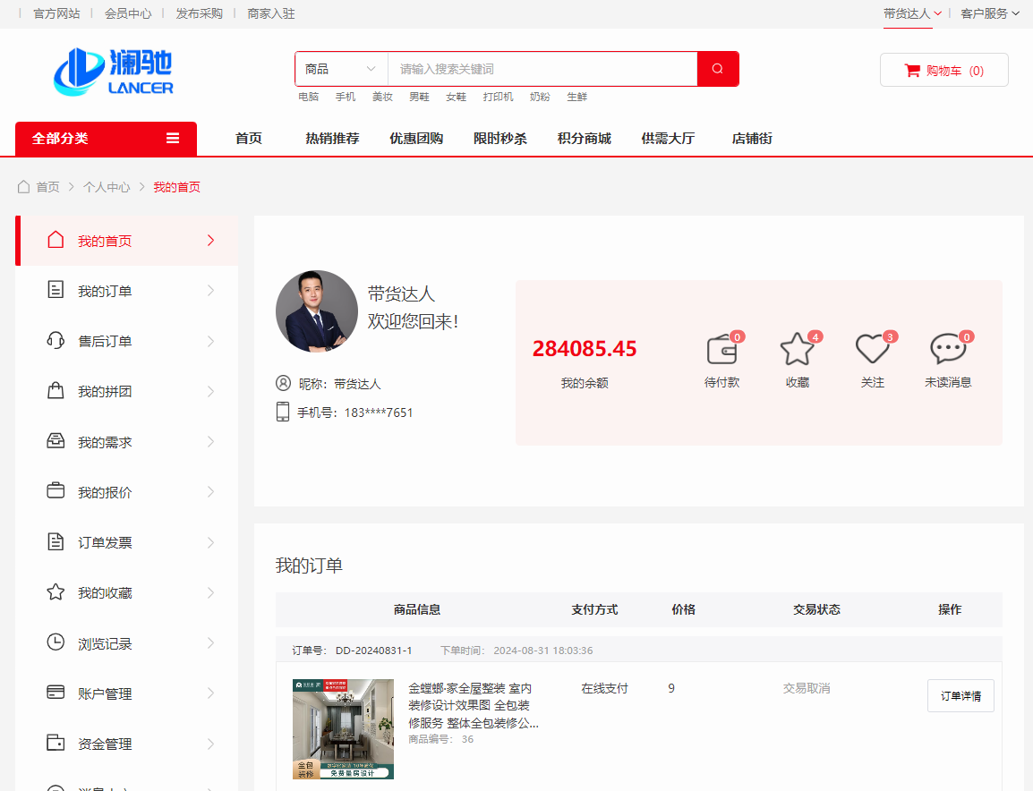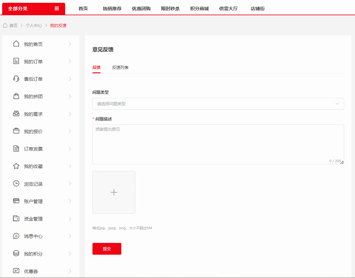 目录 搜索 展开 系统角色说明一、平台管理后台概况设置站点设置上传设置终端设置运营设置运营设置启动页搜索设置积分设置敏感词计划任务反馈分类反馈类型转单设置消费者保障服务财务设置提现设置支付渠道推广设置物流设置快递公司物流查询接口设置互联登录地区设置通知设置消息设置邮件设置短信设置APP推送社交设置IM设置直播设置城市分站微信设置微信设置回复设置菜单设置模板消息SEO设置装修PC装修首页装修页面导航分类导航手机装修首页装修首页导航商品商品管理分类管理品牌管理类型管理规格管理店铺店铺管理供应商管理店铺等级店铺分类入驻协议店铺评价会员会员管理积分管理会员等级注册协议表单数据升级日志用户渠道渠道数据财务会员资金线下支付收款确认订单明细提现管理充值卡管理交易流水-收支明细定额充值提现银行卡订单商品订单退款退货订单评价-店铺评价管理营销活动中心资讯中心分销中心社交种草App发布用户反馈首页弹窗供求中心采购大厅供应大厅基础设置系统用户角色管理安全设置操作日志二、商家管理后台首页订单商品营销资金报表店铺基础售后批发市场三、门店管理后台四、会员(买家)中心PC端个人中心移动端个人中心五、商户入驻流程商城前期准备资料域名备案指南支付宝收款账户开通及配置微信⽀付配置 暂无相关搜索结果! 阅读次数:38 本文档使用 MinDoc 发布 PC端个人中心 PC端个人中心我的首页我的订单售后订单我的拼团我的需求发布需求我的报价订单发票我的收藏我的足迹账户管理资金管理消息中心我的积分优惠券意见反馈平台客服作者:admin 创建时间:2024-09-03 14:41最后编辑:admin 更新时间:2025-12-10 15:34