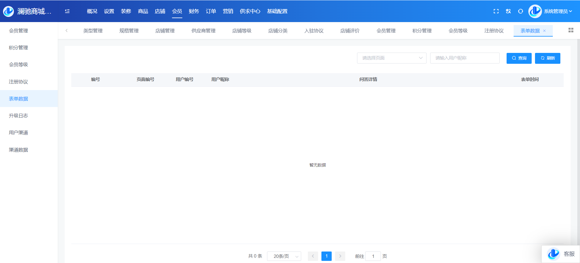 目录 搜索 展开 系统角色说明一、平台管理后台概况设置站点设置上传设置终端设置运营设置运营设置启动页搜索设置积分设置敏感词计划任务反馈分类反馈类型转单设置消费者保障服务财务设置提现设置支付渠道推广设置物流设置快递公司物流查询接口设置互联登录地区设置通知设置消息设置邮件设置短信设置APP推送社交设置IM设置直播设置城市分站微信设置微信设置回复设置菜单设置模板消息SEO设置装修PC装修首页装修页面导航分类导航手机装修首页装修首页导航商品商品管理分类管理品牌管理类型管理规格管理店铺店铺管理供应商管理店铺等级店铺分类入驻协议店铺评价会员会员管理积分管理会员等级注册协议表单数据升级日志用户渠道渠道数据财务会员资金线下支付收款确认订单明细提现管理充值卡管理交易流水-收支明细定额充值提现银行卡订单商品订单退款退货订单评价-店铺评价管理营销活动中心资讯中心分销中心社交种草App发布用户反馈首页弹窗供求中心采购大厅供应大厅基础设置系统用户角色管理安全设置操作日志二、商家管理后台首页订单商品营销资金报表店铺基础售后批发市场三、门店管理后台四、会员(买家)中心PC端个人中心移动端个人中心五、商户入驻流程商城前期准备资料域名备案指南支付宝收款账户开通及配置微信⽀付配置 暂无相关搜索结果! 阅读次数:23 本文档使用 MinDoc 发布 表单数据 表单数据会员移动端装修有表单数据模板,此功能可以用于活动预约报名等使用场景,用户提交预约后,展示在这里作者:admin 创建时间:2024-09-06 12:19最后编辑:admin 更新时间:2025-12-10 15:34